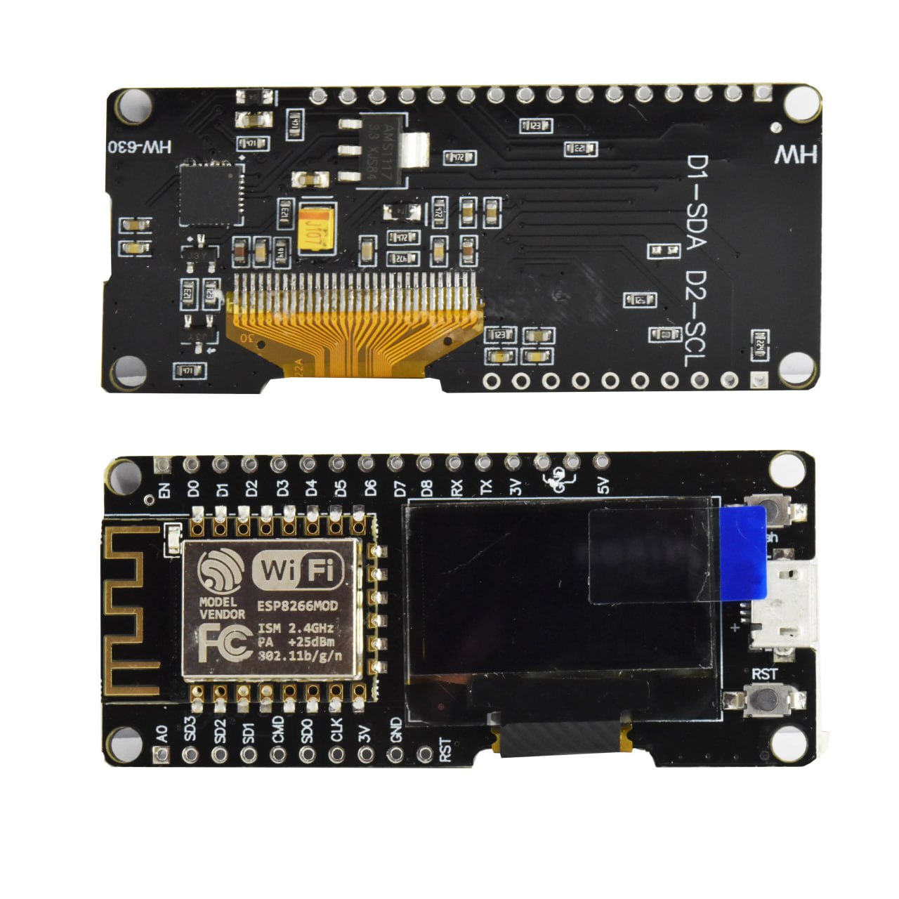 ولتاژ ورودی 5 ولت است و برای تغذیه به صورت جداگانه از باتری قلمی و یا باتری لیتیوم پلمیری و یونی میتوانید استفاده کنید. این برد با نرم افزار آردوینو سازگاری دارد. با ترکیب برد NodeMCU ESP8266 و نمایشگر OLED به اندازه 0.96 اینچ، میتوان برنامههای اینترنت اشیاء بیسیم (IoT) قدرتمندی را پیادهسازی کرد. برد NodeMCU ESP8266 یک میکروکنترلر چندمنظوره است که قابلیت Wi-Fi داخلی دارد و به اینترنت متصل میشود تا با خدمات مختلف IoT تعامل کند. نمایشگر OLED به اندازه 0.96 اینچ نیز یک صفحهنمایش کوچک و آسان برای نمایش اطلاعات یا تعامل با دستگاه به صورت محلی ارائه میدهد.